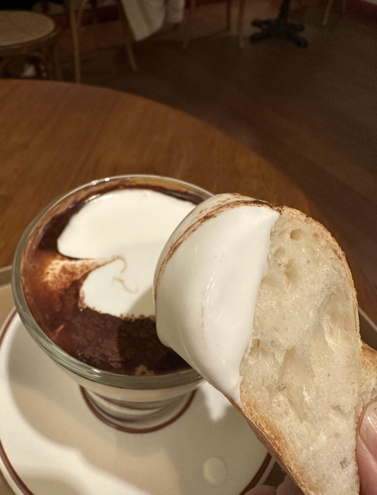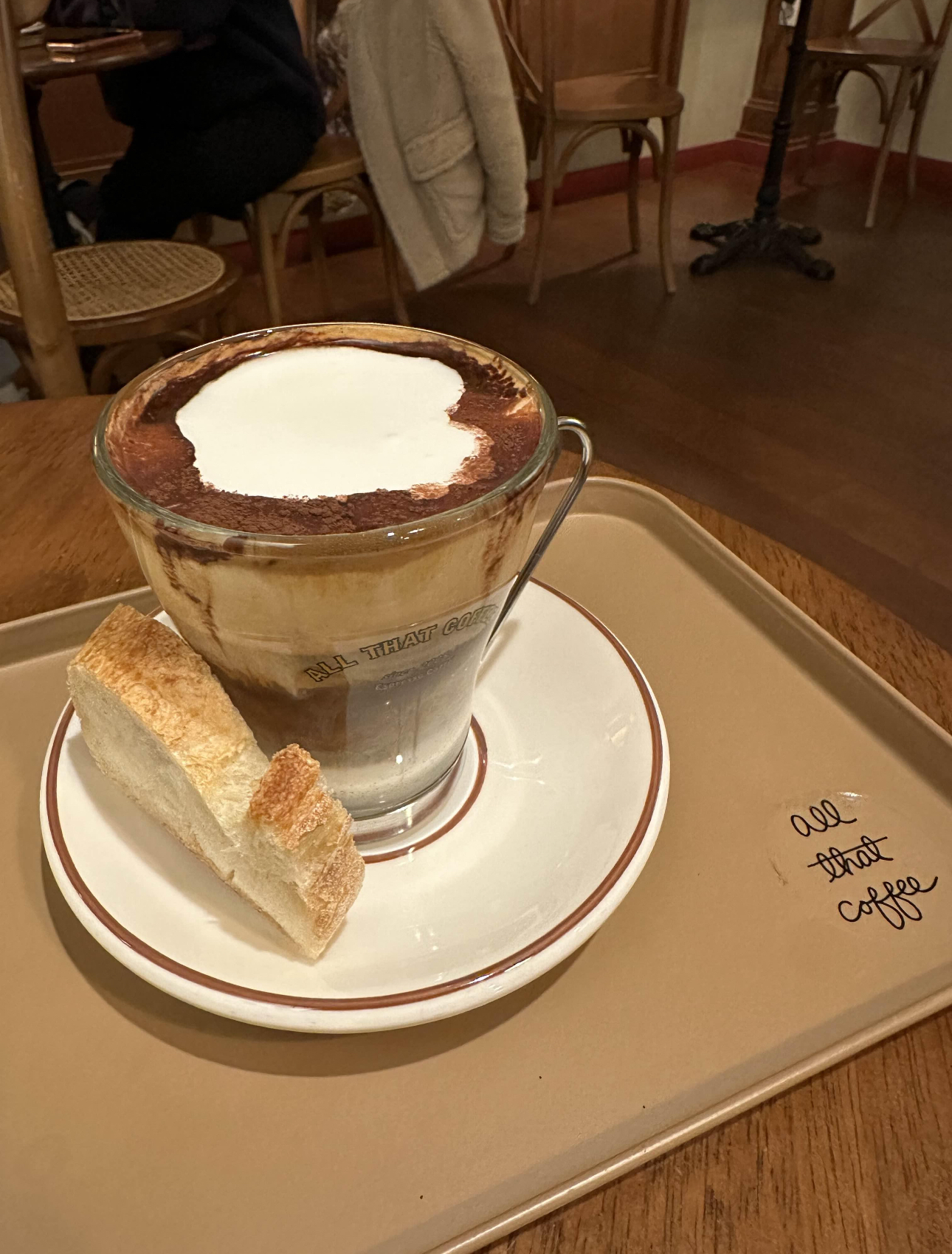 저도 대표메뉴인 올댓커피를 시켰어요. 약간 아인슈페너 같은 느낌의 커피와 바게뜨가 함께 나왔는데 달지 않고 풍부한 크림과 쌉싸름한 커피를 함께 즐길 수 있었어요!