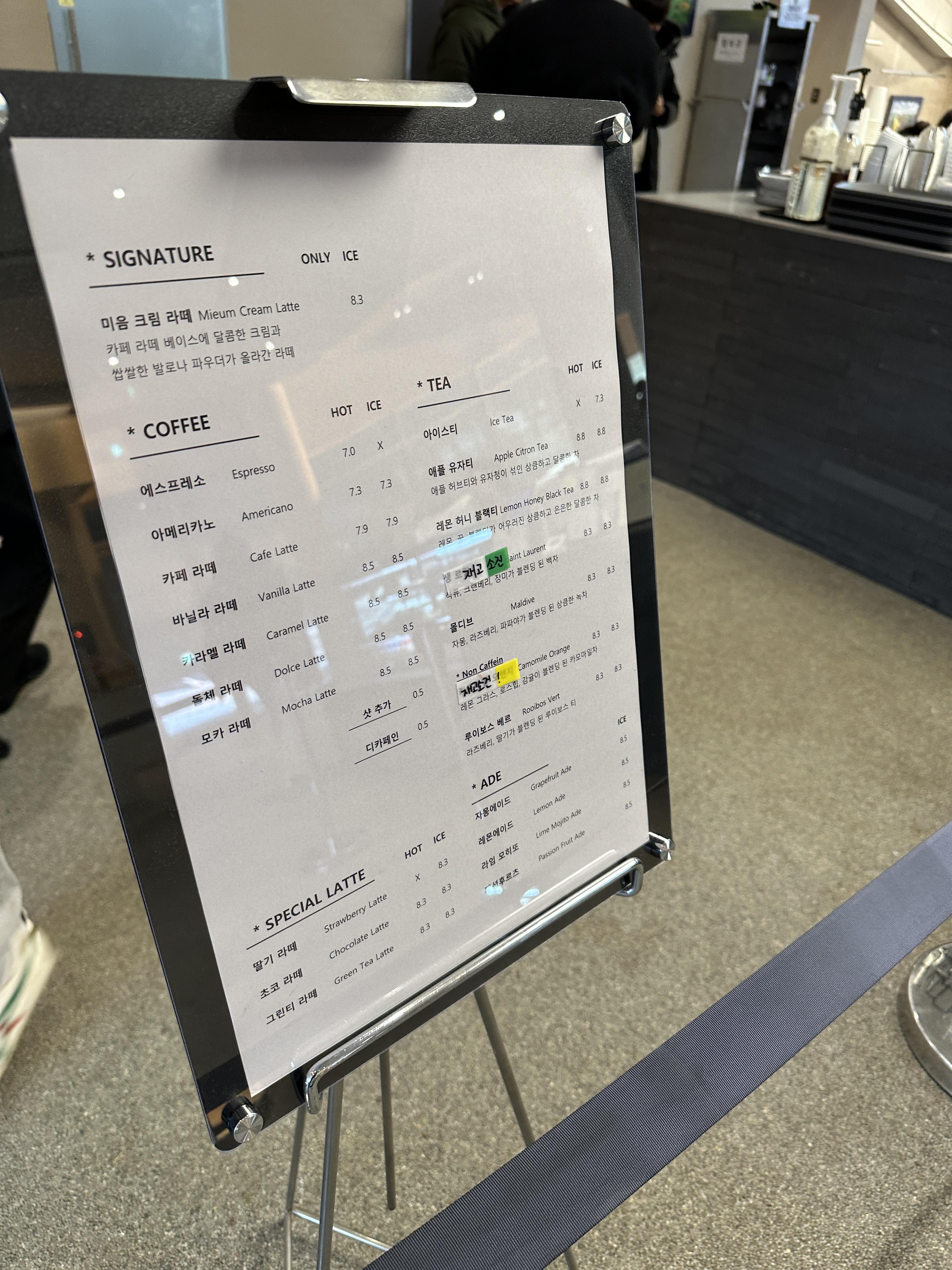 참고로 단가가 좀 쎈 곳이다. 시그니처 음료라는 ‘미음 크림 라떼’는 잔당 8.3천원. 원두가 아님 크림이 최고급인지