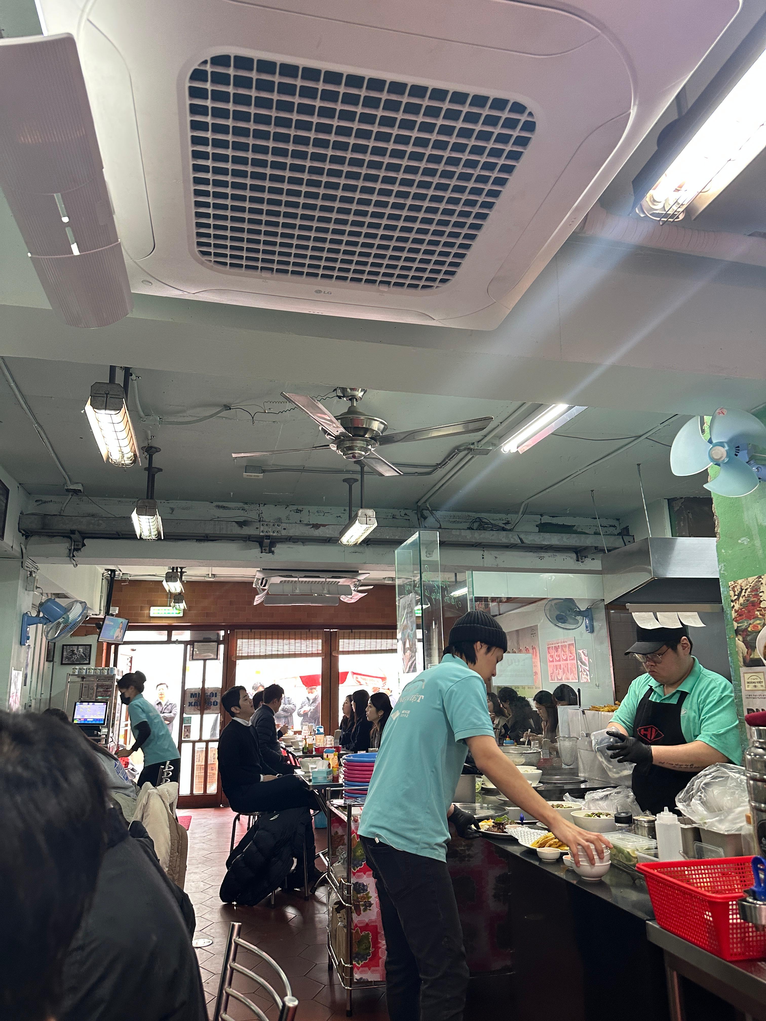 - 베트남 호치민 시내 식당의 인테리어를 그대로 구현(스텐 테이블, 선풍기, 현지 소품).