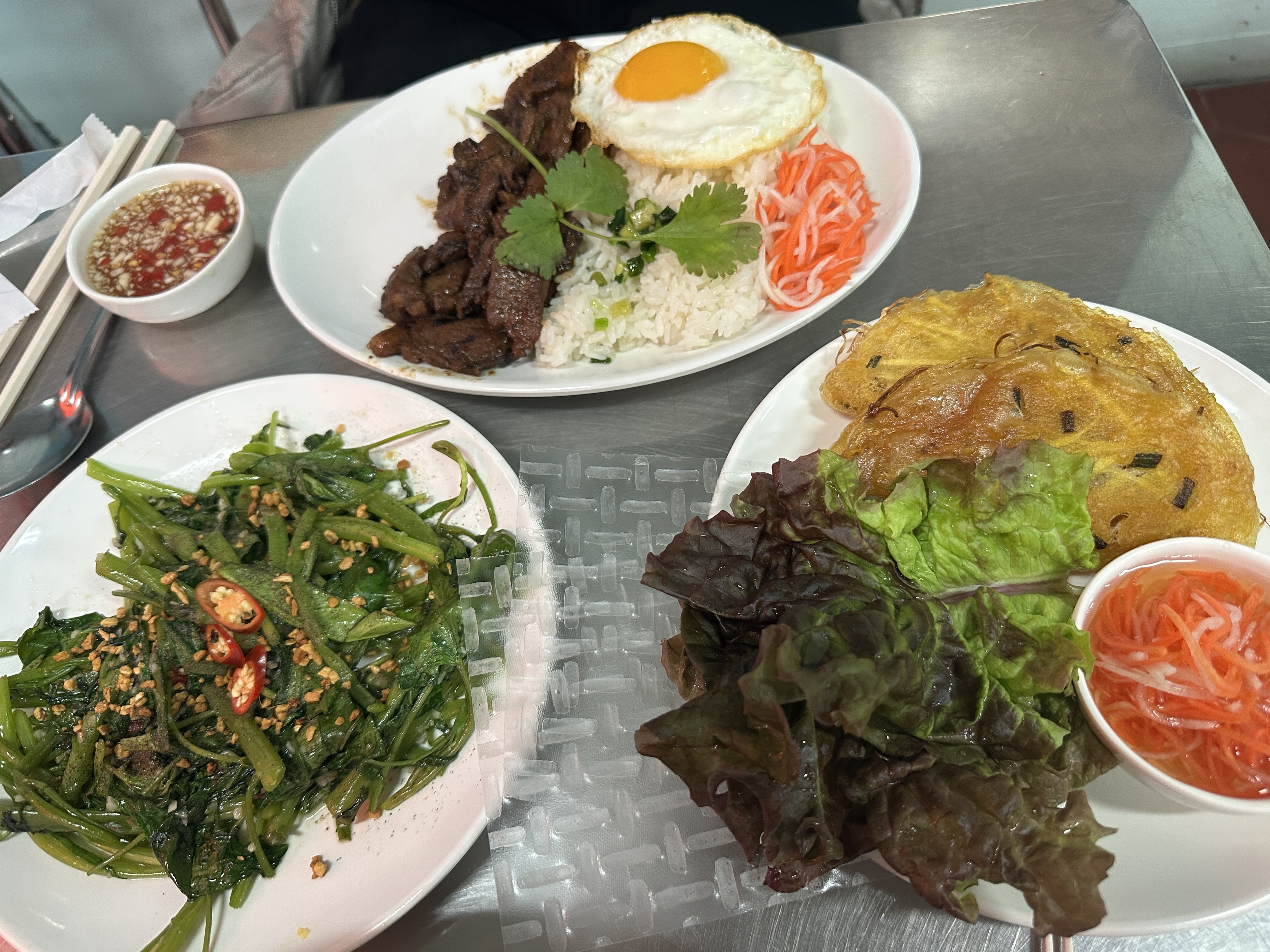 - 개인적으로 맛집이라는 기대를 하고 가서인지는 모르겠지만, 현지 느낌과는 좀 간극이 큰 식당이었습니다. 쌀국수 국물은 너무 허옇고, 공심채 볶음은 고추 매운맛과 후추 매운맛이 너무 강해서 현지에서 먹던 느낌은 아니었습니다. 그래도, 마늘식초는 있어서 로컬 느낌을 살렸다는 느낌은 있었는데, 다음에 좀 한적한 시간에 다시 한 번 방문해보겠습니다.