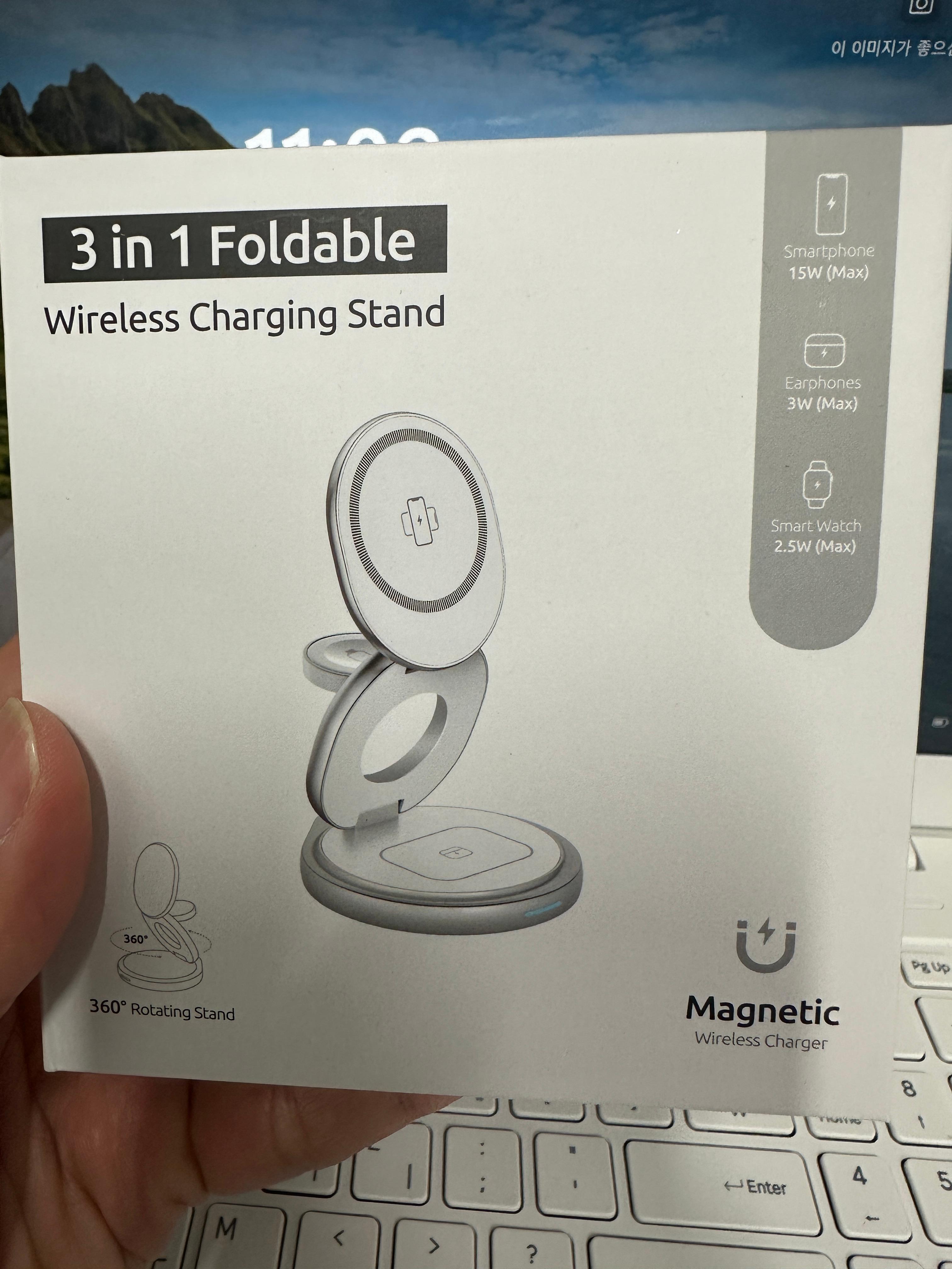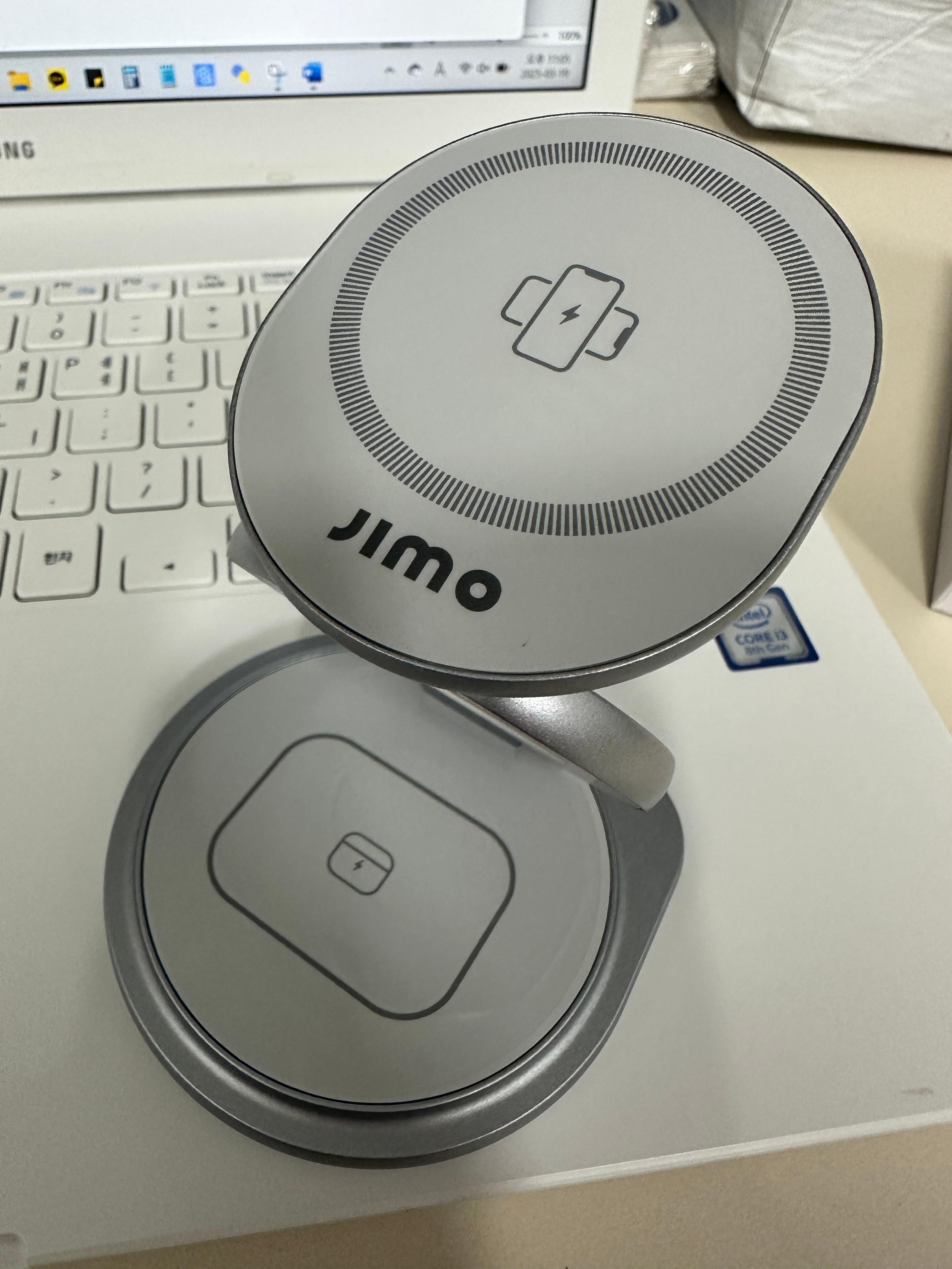해당 제품은 "지모 베이직 3 in 1 360도 고속 맥세이프 충전기"는 지모(JIMO)라는 브랜드에서 출시한 다기능 무선 충전기로, 스마트폰, 스마트워치, 무선 이어폰을 동시에 충전할 수 있는 3 in 1 제품입니다. 이 충전기는 360도 회전 기능과 맥세이프(MagSafe) 호환성을 강조하며, 깔끔한 디자인과 실용성으로 주목받고 있습니다.