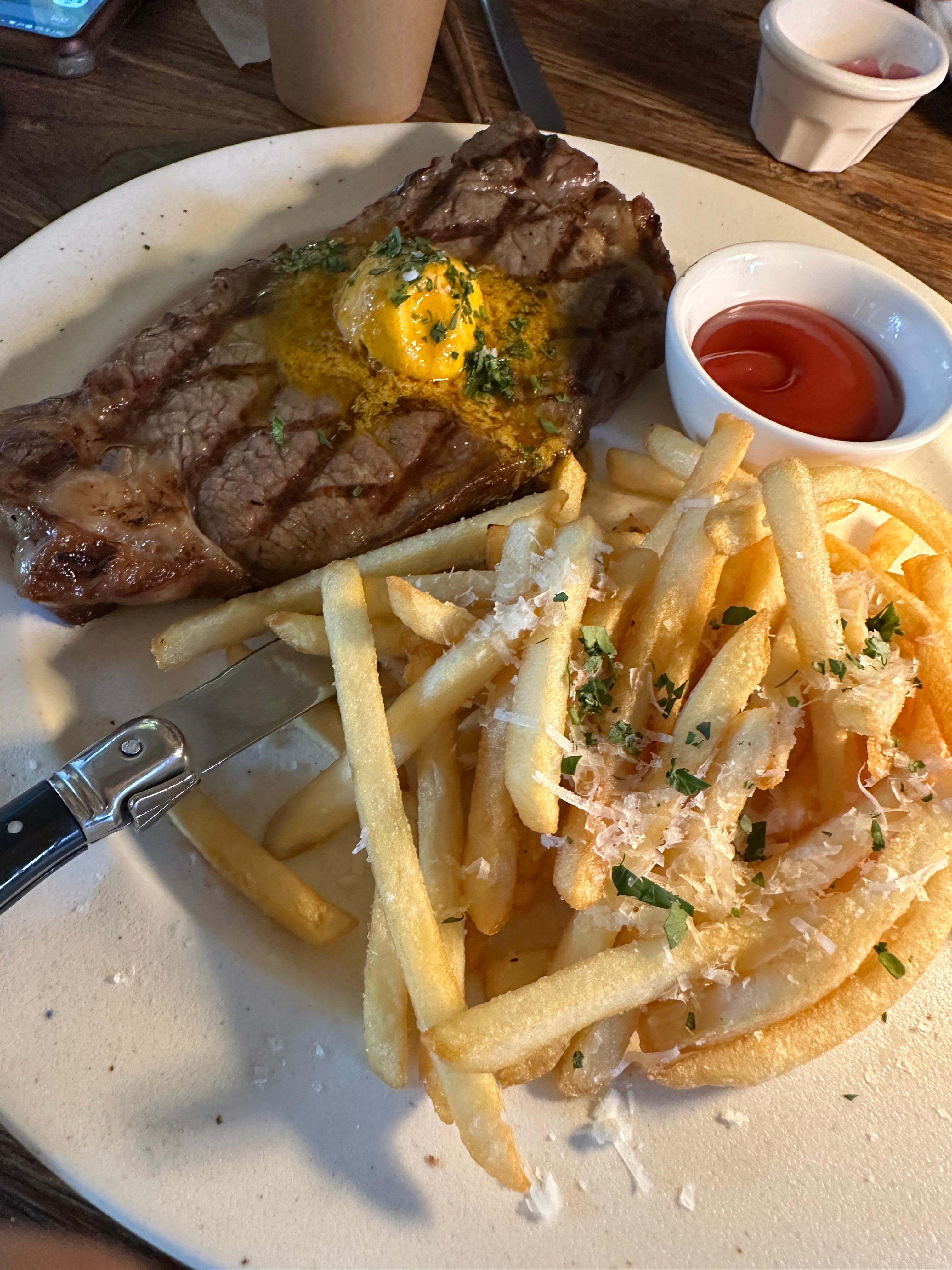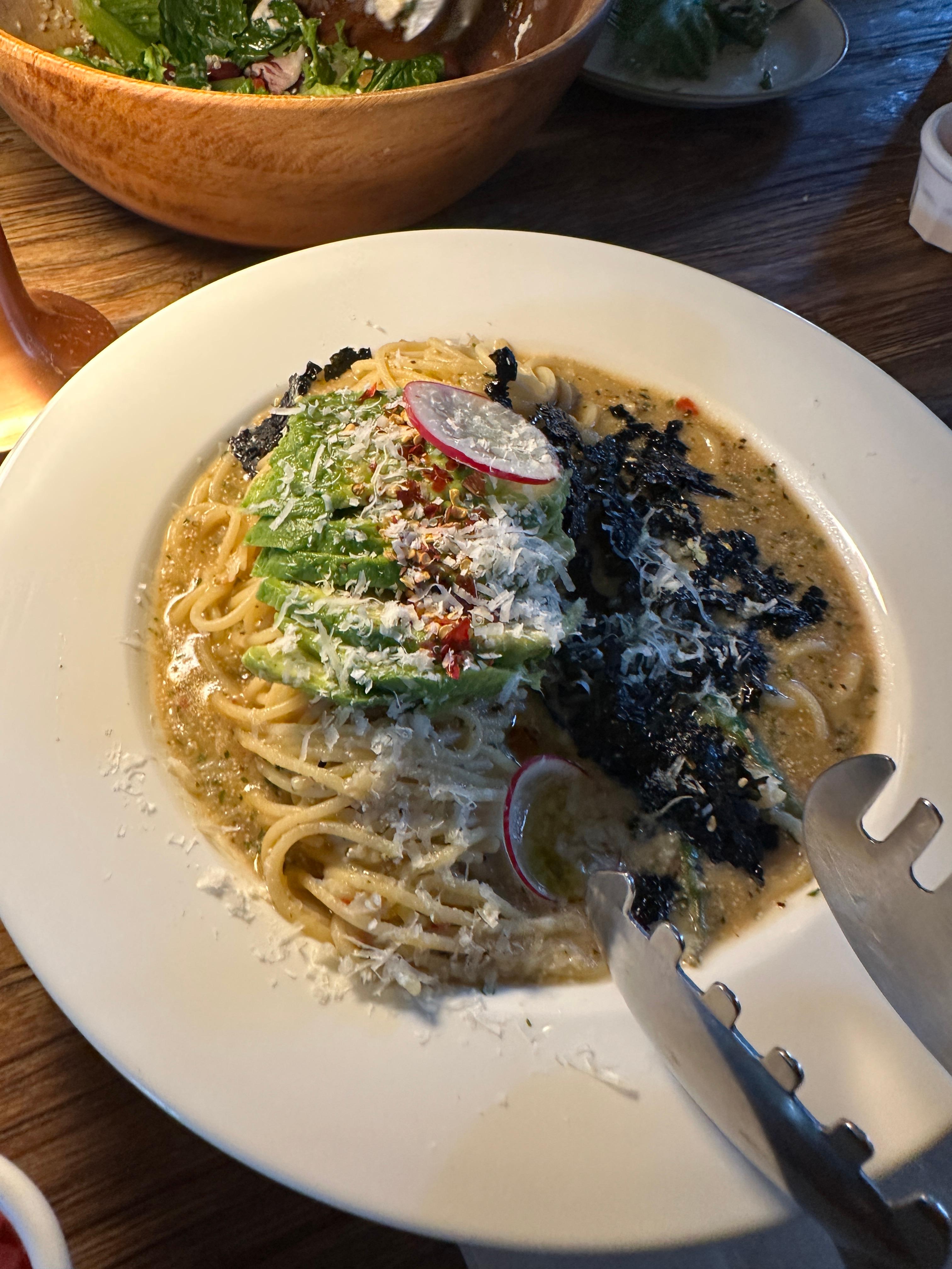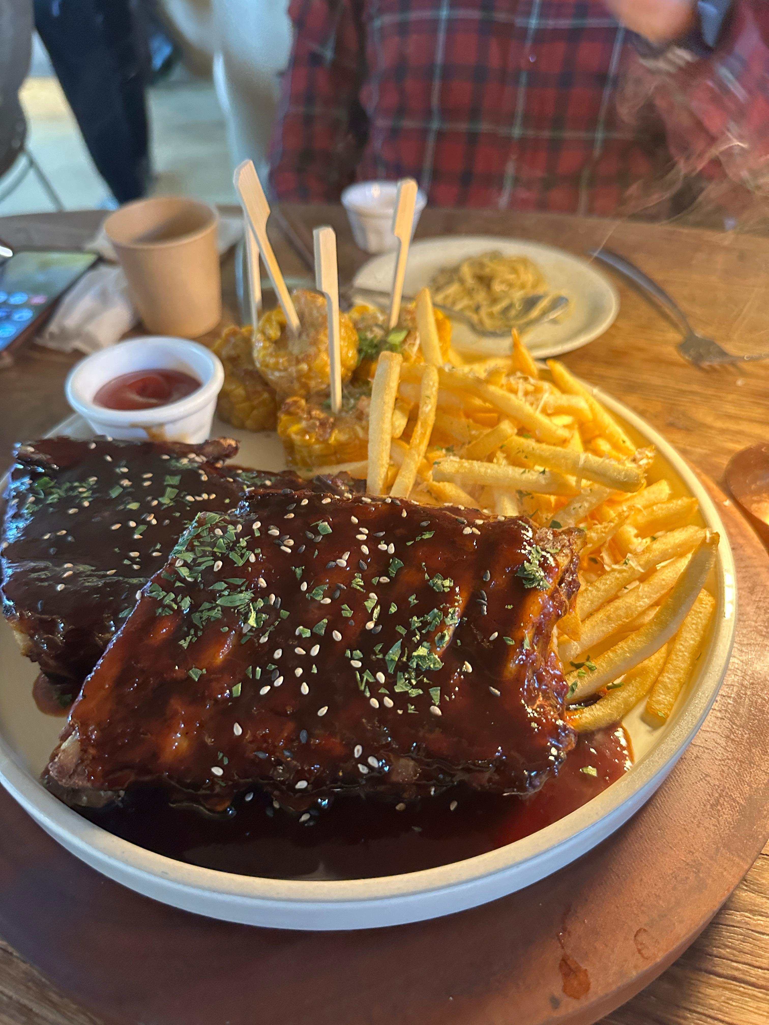저희가 주문한 메뉴는 ‘스테이크 프리츠’, ‘잭다니엘 바비큐 포크립’, ‘아보카도 명란 오일파스타’, ‘멀티빈 리코타 샐러드’ 였는데, 모두 만족스런 메뉴였어요. 아보카토 명란 오일파스타는 다 먹은 소스에 밥 비벼도 맛있겠다는 호평이었고, 스테이크도 부드럽고, 포크립 또한 부드러워서 남녀노소 먹기 좋았습니다. 조그마하게 포크립은 소스가 좀 짠 느낌이라는 평도 있었으니 참고해주세요.