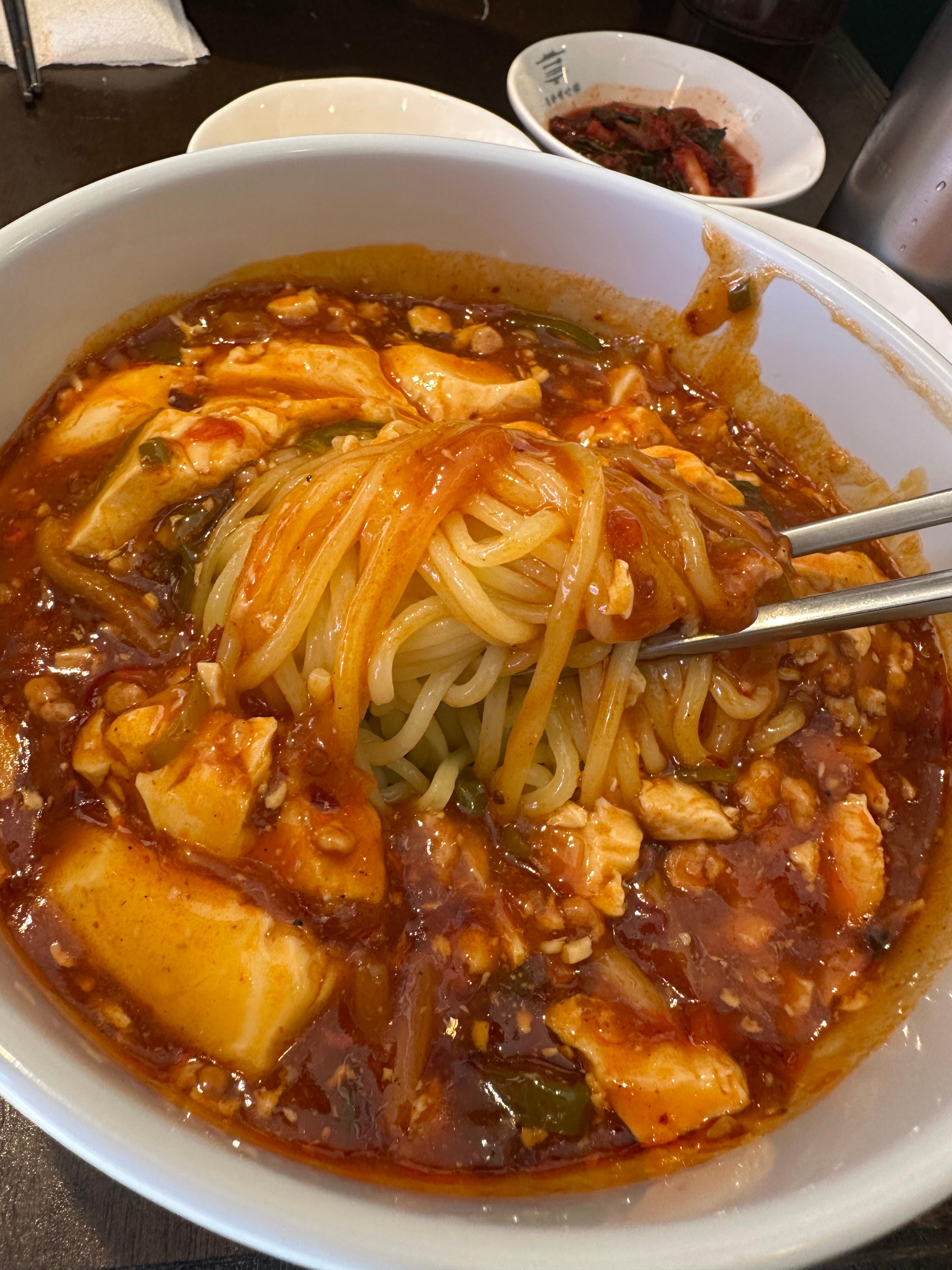 제가 먹은 건 마파두부면이었는데요. 마라의 맛이 아주 강렬해서 매운거 좀 기피하시는 분들은 피하셔야 할 것 같아요. 조금 아쉬운 건 웍의 불맛 보다는 급식처럼 미리 해놓은 마파두부를 데워서 먹는 느낌이 있었어요. 다른 메뉴도 나중에 먹어보고 말씀 드릴께요!