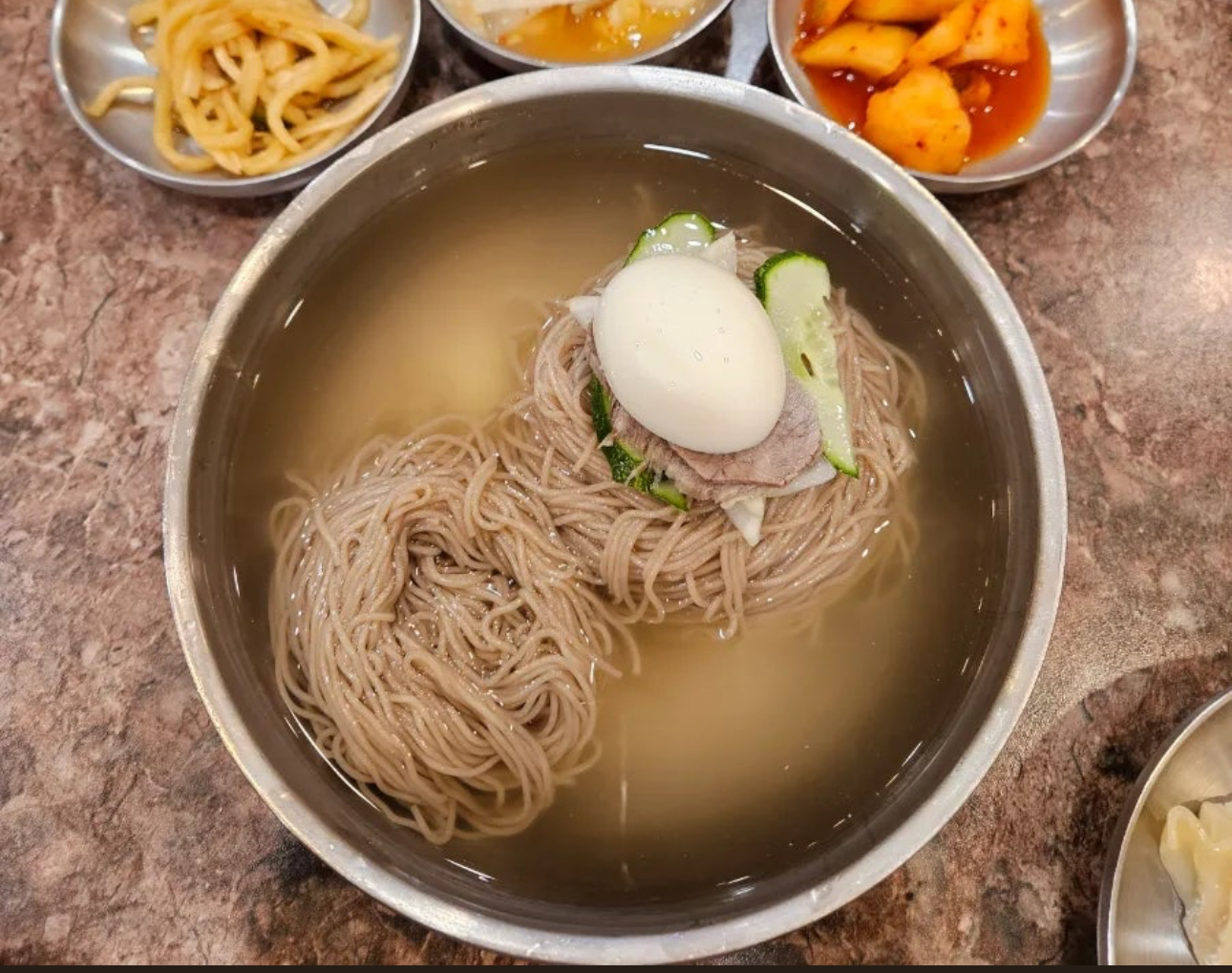 ‘만포면옥’은 동치미와 고기 육수를 조화롭게 섞어 깔끔하면서도 묘한 단맛을 내는 육수를 고집하고 있어요. 예를 들어, ‘을지면옥’이나 ‘우래옥’ 같은 곳이 고기 육수의 진함을 강조하거나 맑고 담백한 맛에 치중한다면, ‘만포면옥’은 동치미의 시원함과 육수의 감칠맛을 균형 있게 조율해 색다른 풍미를 제공하고 있다고 합니다. 사실 전 먹으며 '동치미' 맛은 잘 모르겠던데, 아직 미각이 부족한가 봅니다. 이 미묘한 조합은 매니아들 사이에서 “첫 맛과 끝 맛이 다르다”는 평가를 받을 정도로 독특합니다.