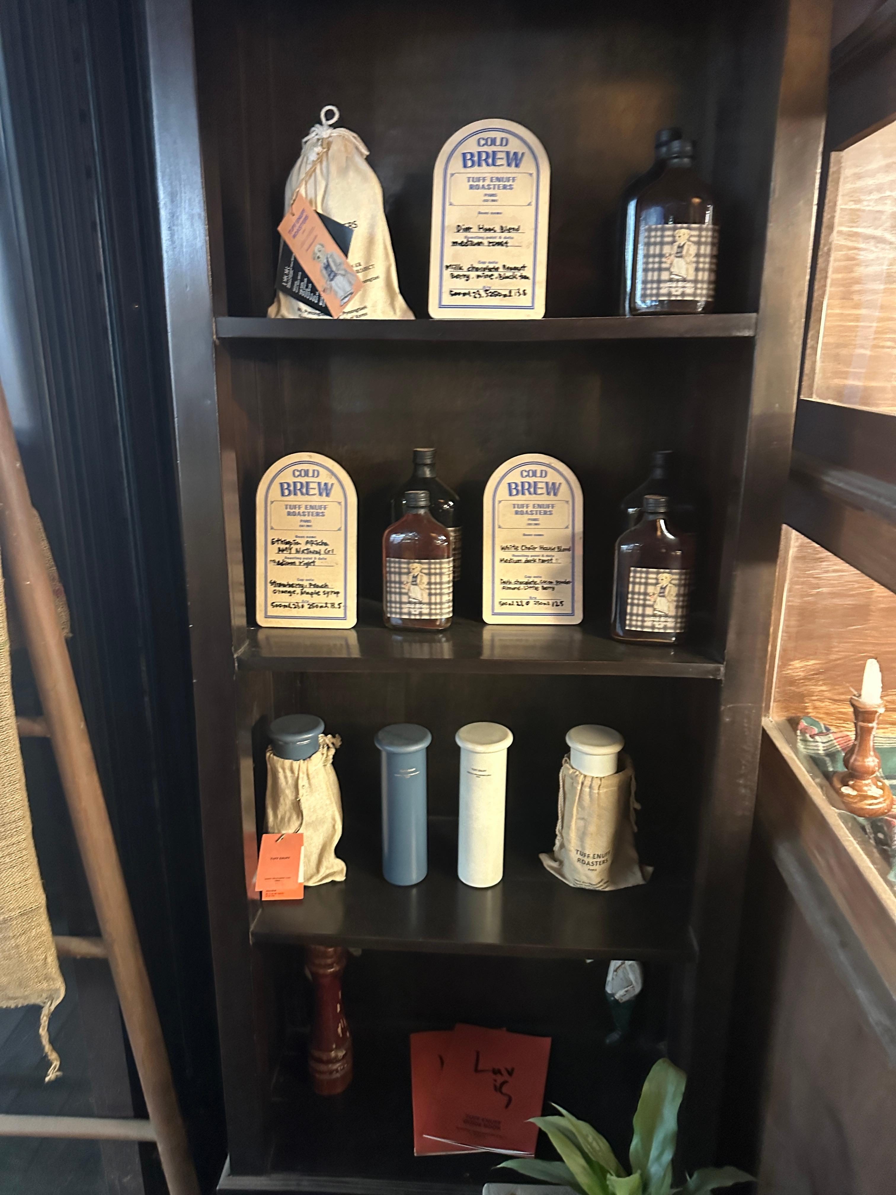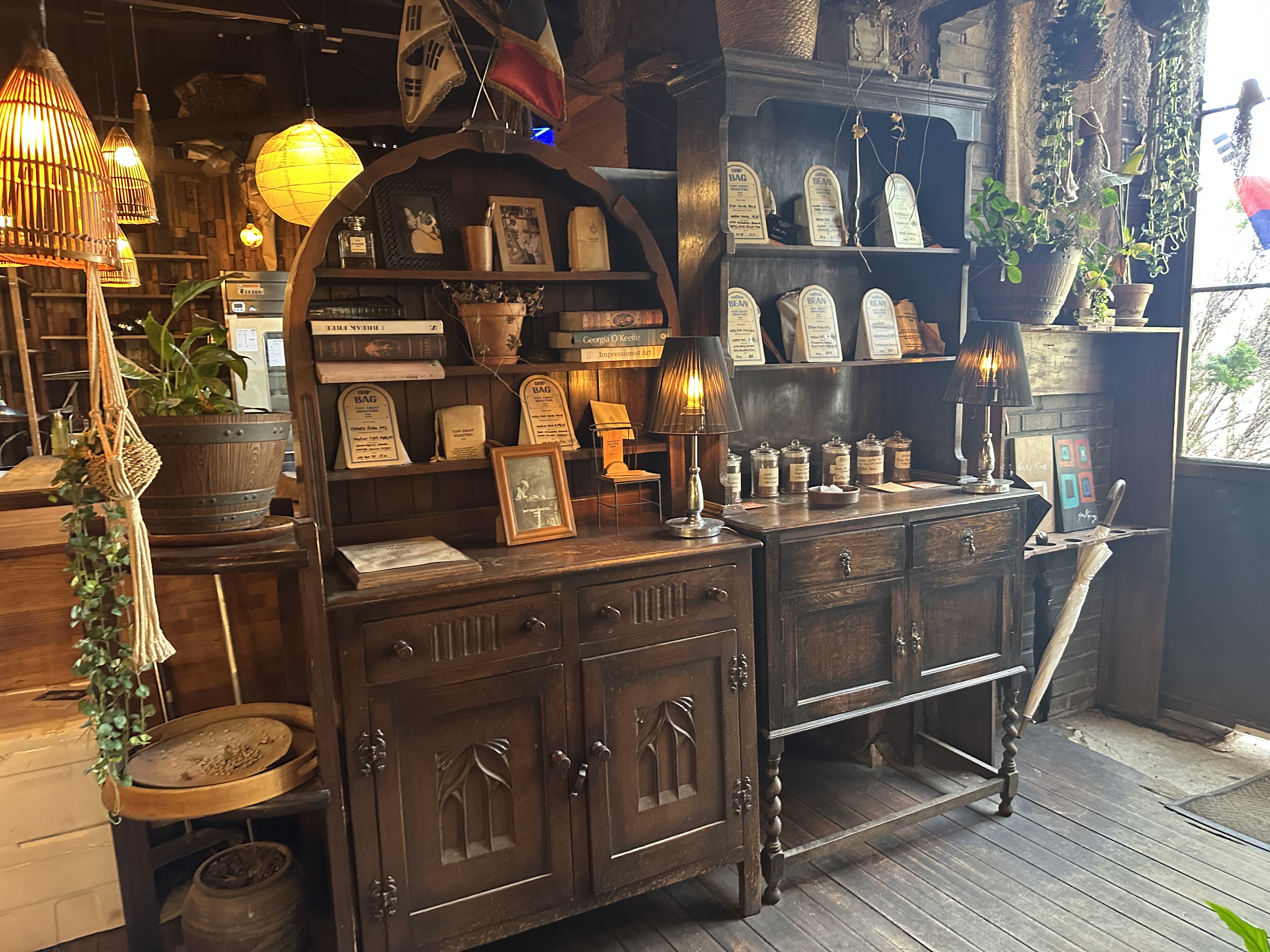 터프이너프는 외관은 다소 평범할 수 있지만, 내부에 들어서면 마치 유럽의 오래된 서점이나 마법 학교를 연상케 하는 앤틱한 인테리어로 압도합니다. 나무 가구, 흔들의자, 소파, 콘솔 등 다양한 좌석 배치와 디테일한 소품들은 단순한 빈티지 스타일을 넘어 감성적이고 스토리텔링이 담긴 공간을 제공합니다. 공간은 단순한 배경이 아니라 음식과 음료의 경험을 증폭시키는 요소입니다. 이곳의 분위기는 커피 한 잔과 디저트를 즐기며 시간을 머무르게 만드는 몰입감을 제공하며, 이는 대형 프랜차이즈나 모던 스타일 카페와 확연히 구분됩니다.