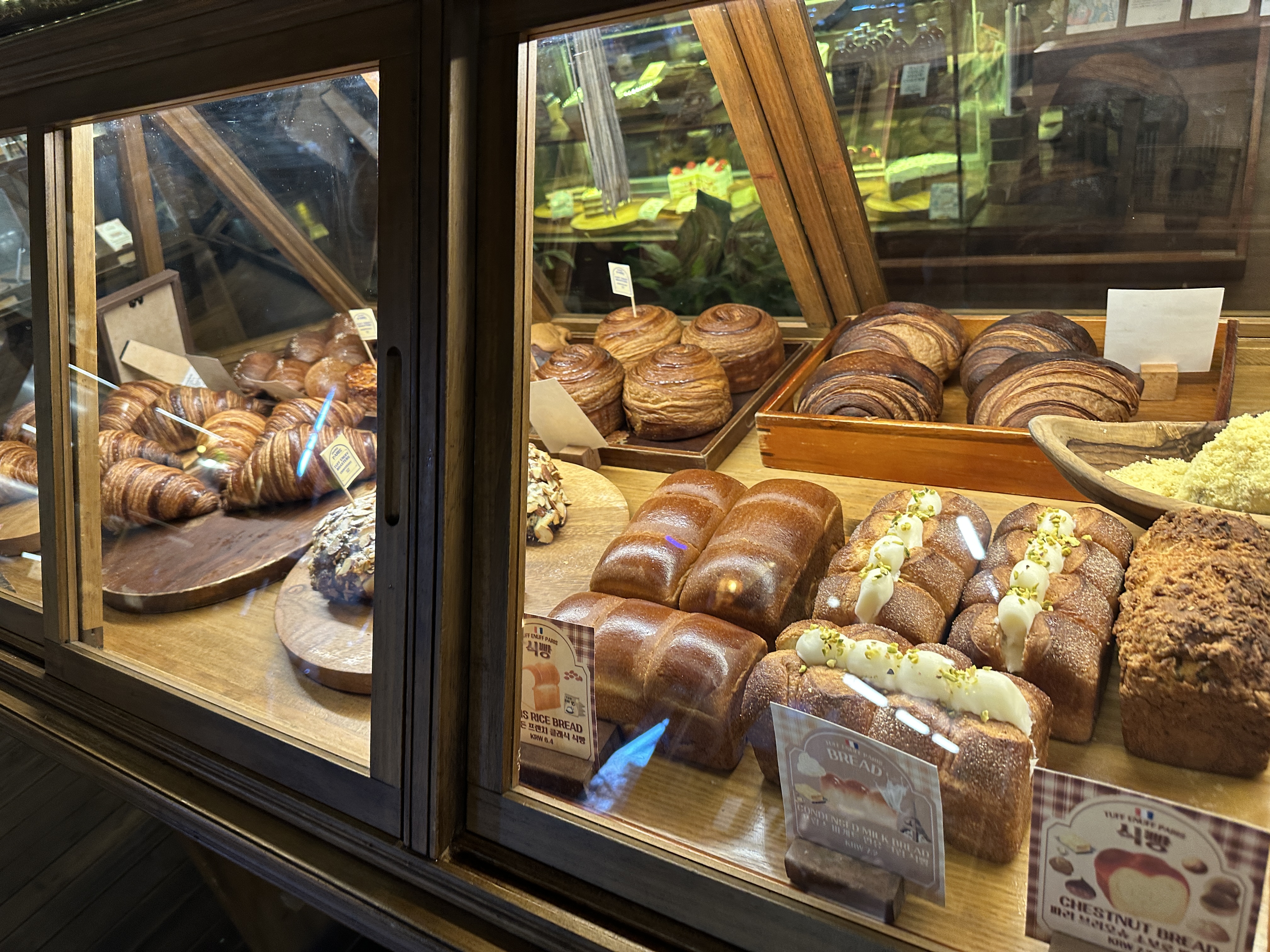 터프이너프의 베이커리는 단순한 디저트가 아니라 카페의 정체성을 강화하는 핵심 요소입니다. 프랑스 국기가 꽂힌 빵(특히 소금빵이나 크로와상 같은 품목)은 프랑스 제과의 전통을 연상시키며, 시각적으로도 미식가의 호기심을 자극합니다. 메뉴로는 스콘, 크로와상, 시폰케이크, 수제 쿠키, 파운드 케이크 등이 있으며, 특히 소금빵은 버터의 풍미와 짭짤한 균형으로 호평받습니다. 이곳 베이커리의 차별점은 수작업 중심의 정성과 현지화된 프랑스 스타일에 있습니다. 예를 들어, 스콘은 겉은 바삭하고 속은 부드러운 텍스처에 잼과 함께 제공되며, 녹차 라즈베리 쿠키처럼 창의적인 조합은 지역 재료와 글로벌 감성을 융합합니다. 이는 대량생산 프랜차이즈(예: 파리바게뜨)와 달리 소규모 로스터리 카페가 추구하는 ‘작은 럭셔리’를 구현합니다.