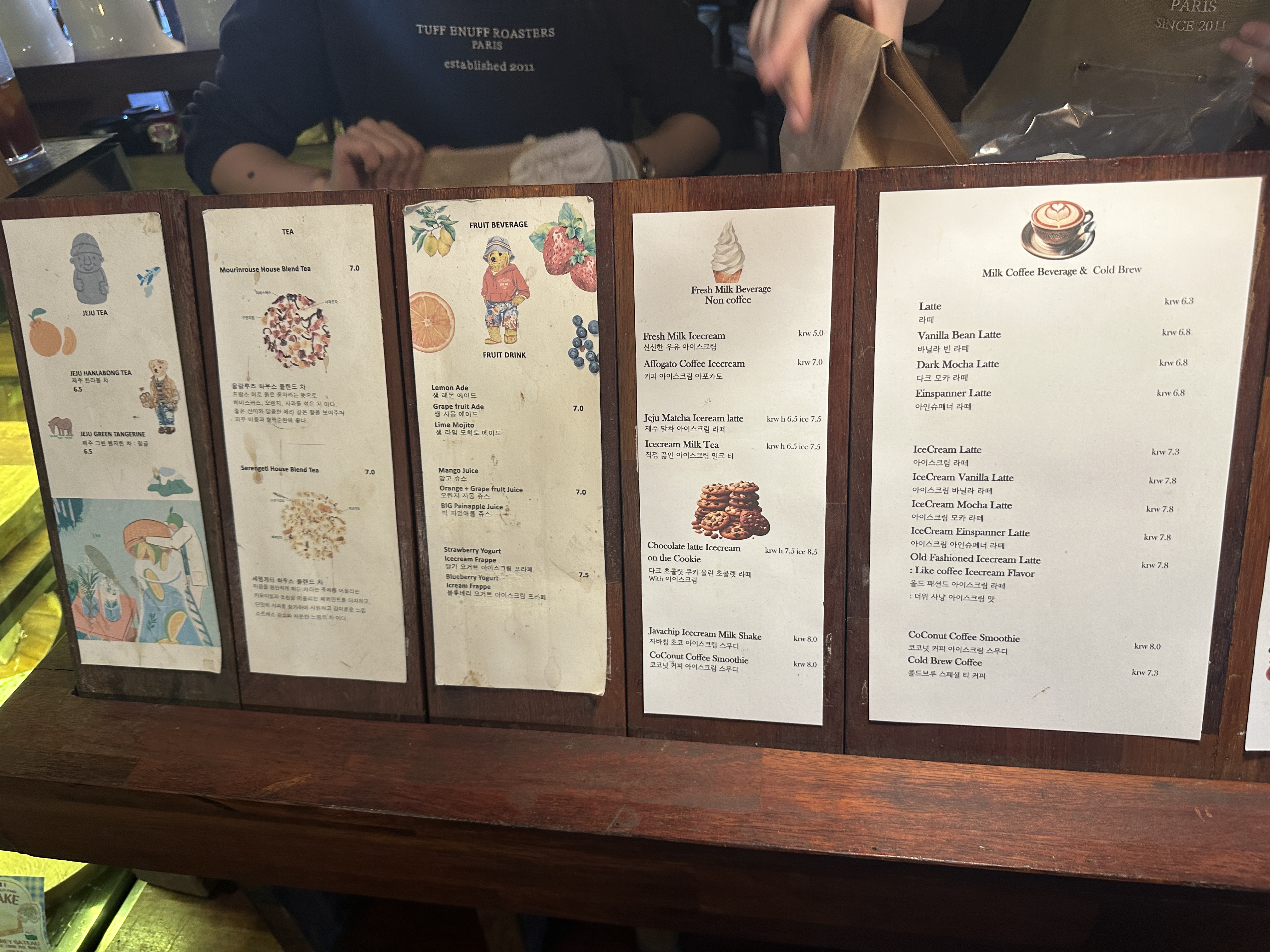 커피 원두 이름들이 조금 독특한데요. 커피의 향미와 스토리를 중시하는 접근이라고 하네요. 예를 들어, ‘바람’ 블렌드는 캐머마일과 같은 꽃 향을 접목해 독특한 아로마를 제공하며, 이는 커피를 단순한 음료가 아닌 예술적 표현으로 격상시킵니다. 이러한 커피 메뉴는 블루보틀이나 스페셜티 커피 전문점과 비교해도 독창성이 돋보이며, 지역적 맥락에서 평택이라는 비도심권에서 이런 퀄리티를 제공한다는 점이 차별점입니다.