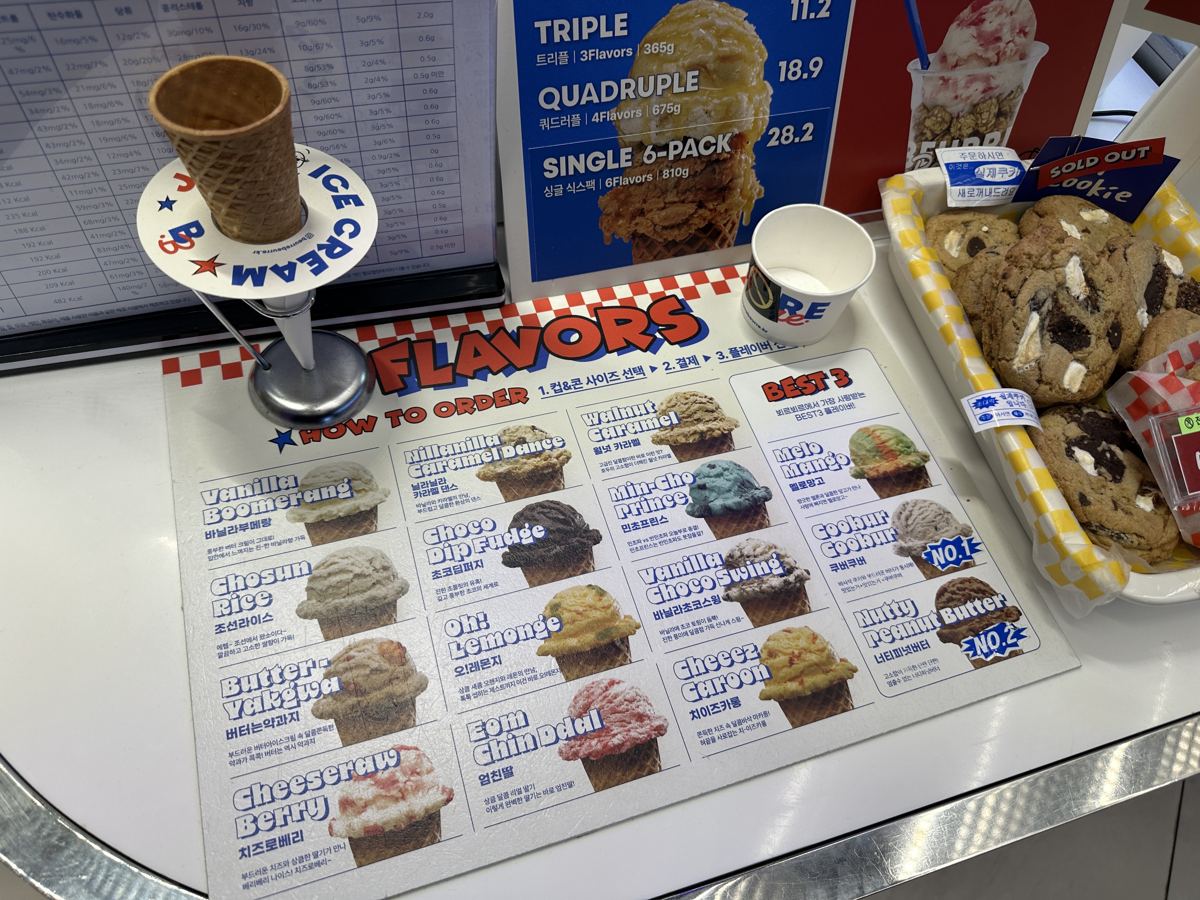 - 배스킨라빈스와 비교: 배스킨라빈스는 31가지 다양한 플레이버와 대중적인 접근성을 강조하지만, 뵈르뵈르는 프리미엄 버터 기반의 고급스러운 맛과 독특한 브랜드 감성으로 차별화됩니다. 뵈르뵈르의 아이스크림은 더 꾸덕하고 진한 질감으로, 달달한 맛을 선호하는 이들에게 강렬히 어필합니다.