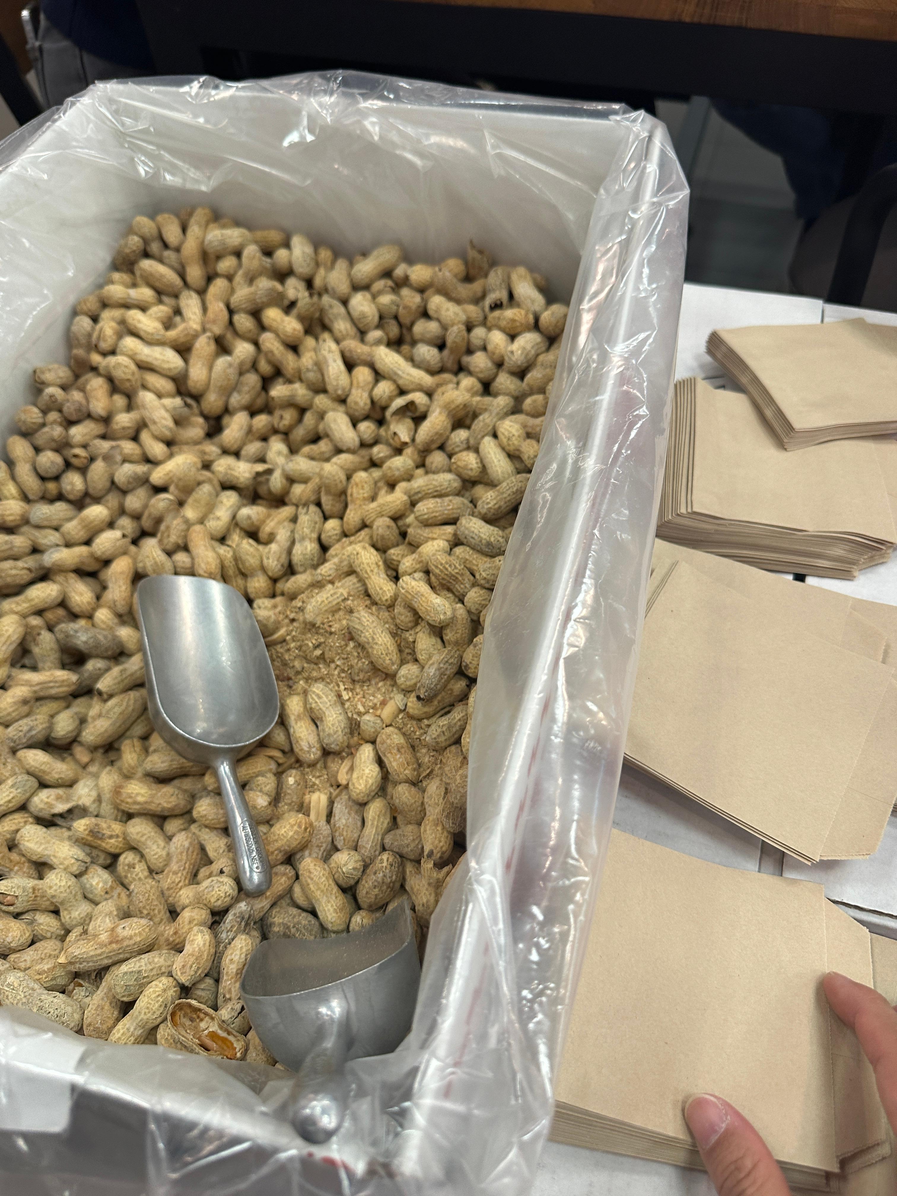 - 그리고 땅콩이 포대로 자리하고 있고 매장 안에서 그리고 포장해서 가져갈 수 있게 땅콩 스쿱이 자리하고 있어요. 생각보다 짭짤합니다.