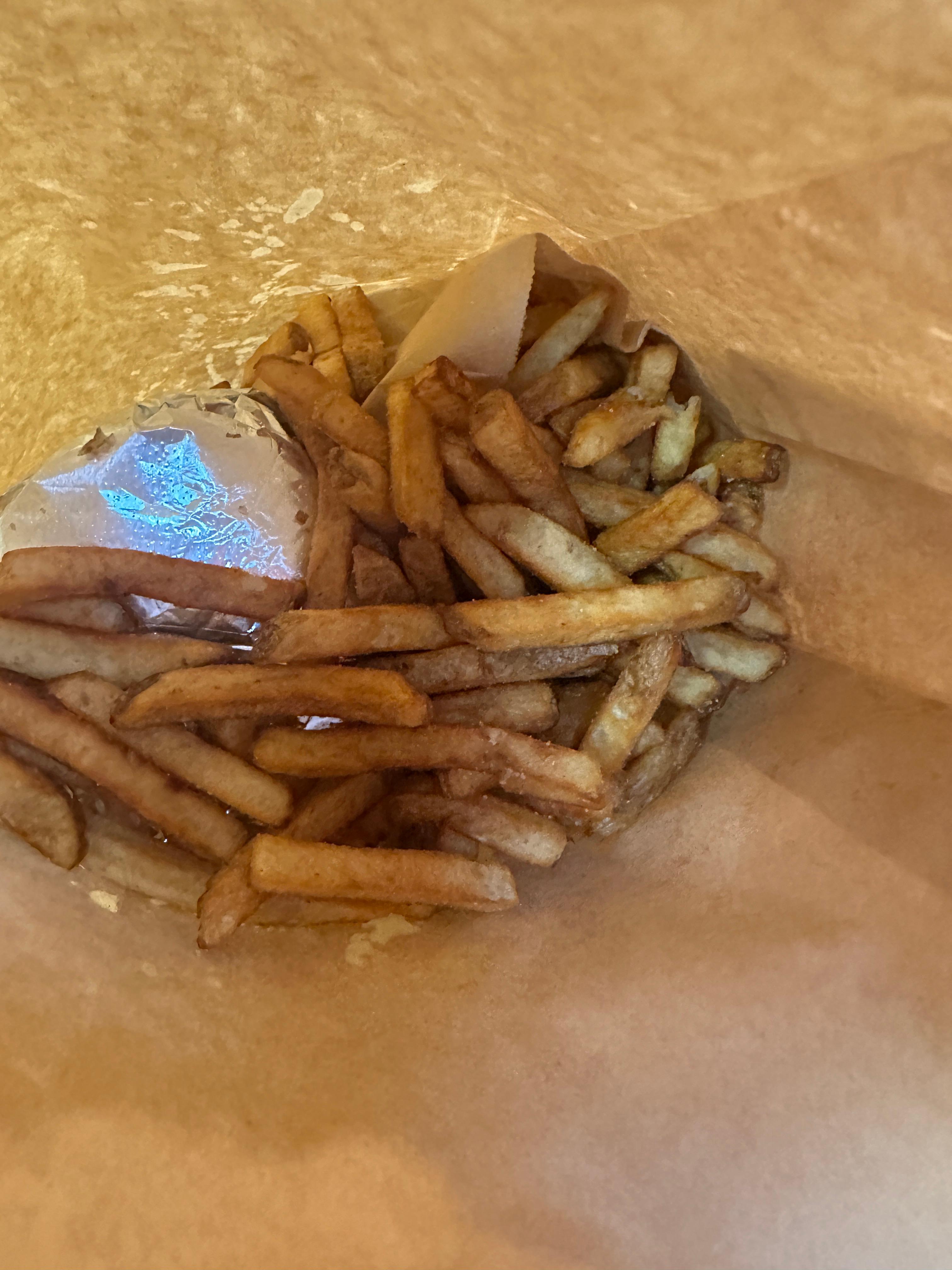 - 프라이도 포인트: 땅콩기름으로 튀긴 케이준 스타일 프렌치프라이는 파이브가이즈의 시그니처 중 하나로, 일반적인 감자튀김보다 훨씬 고소하고 풍미가 깊습니다. 단! 맥도날드 프렌치프라이와 같이 바삭한 느낌은 없어요! 그리고 가격이 비싼걸 보실 수 있듯이 양도 꽤 되니 이 점 참고해서 주문하세요.