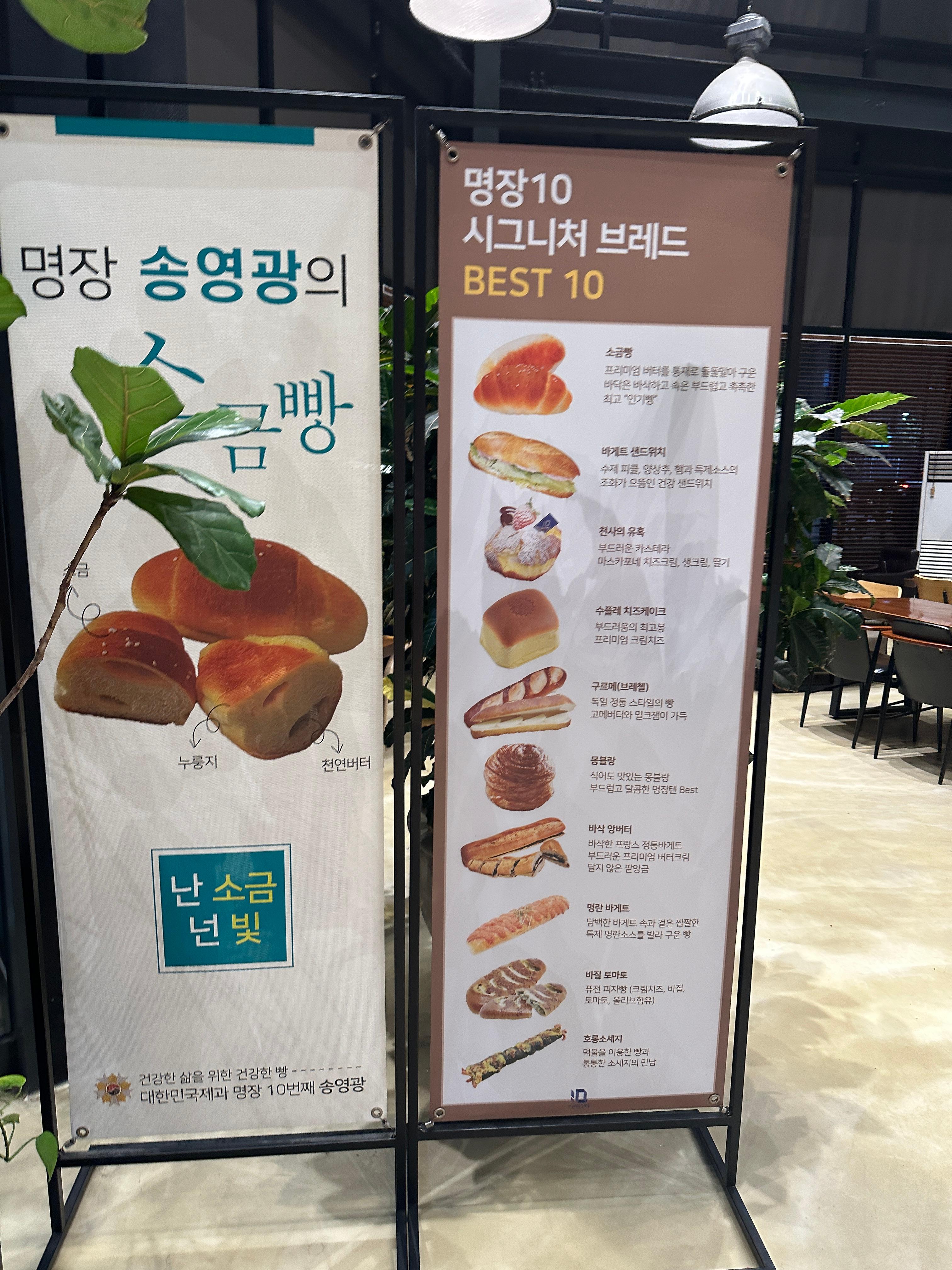 • 소금빵: 프리미엄 버터를 통째로 감싸 구워 겉은 바삭하고 속은 촉촉한 식감이 특징입니다.