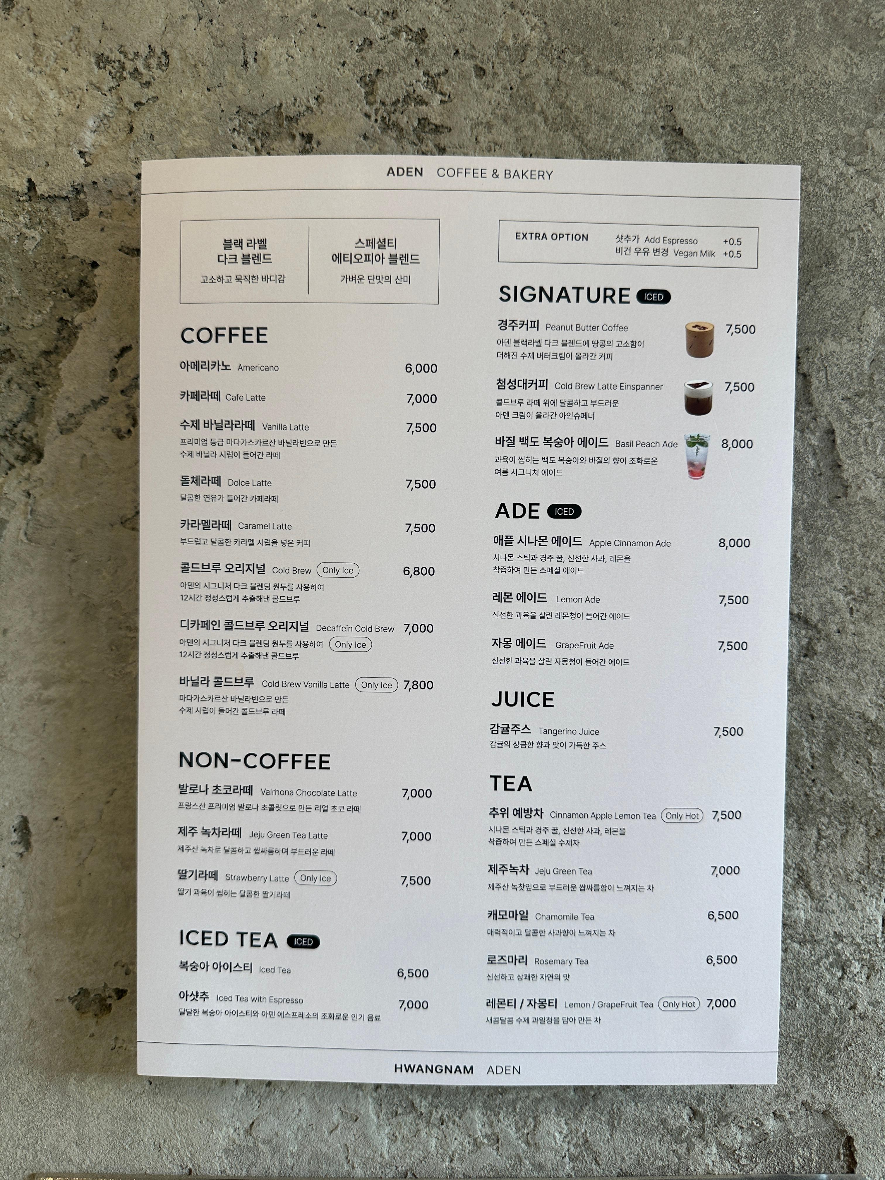 • 경주커피: 콜드브루에 우도 땅콩의 고소함이 더해진 수제 버터크림 커피로, 아덴의 대표 메뉴입니다. 경주에서 우도 땅콩이라 좀 생소하지만 그래도 맛있어요!