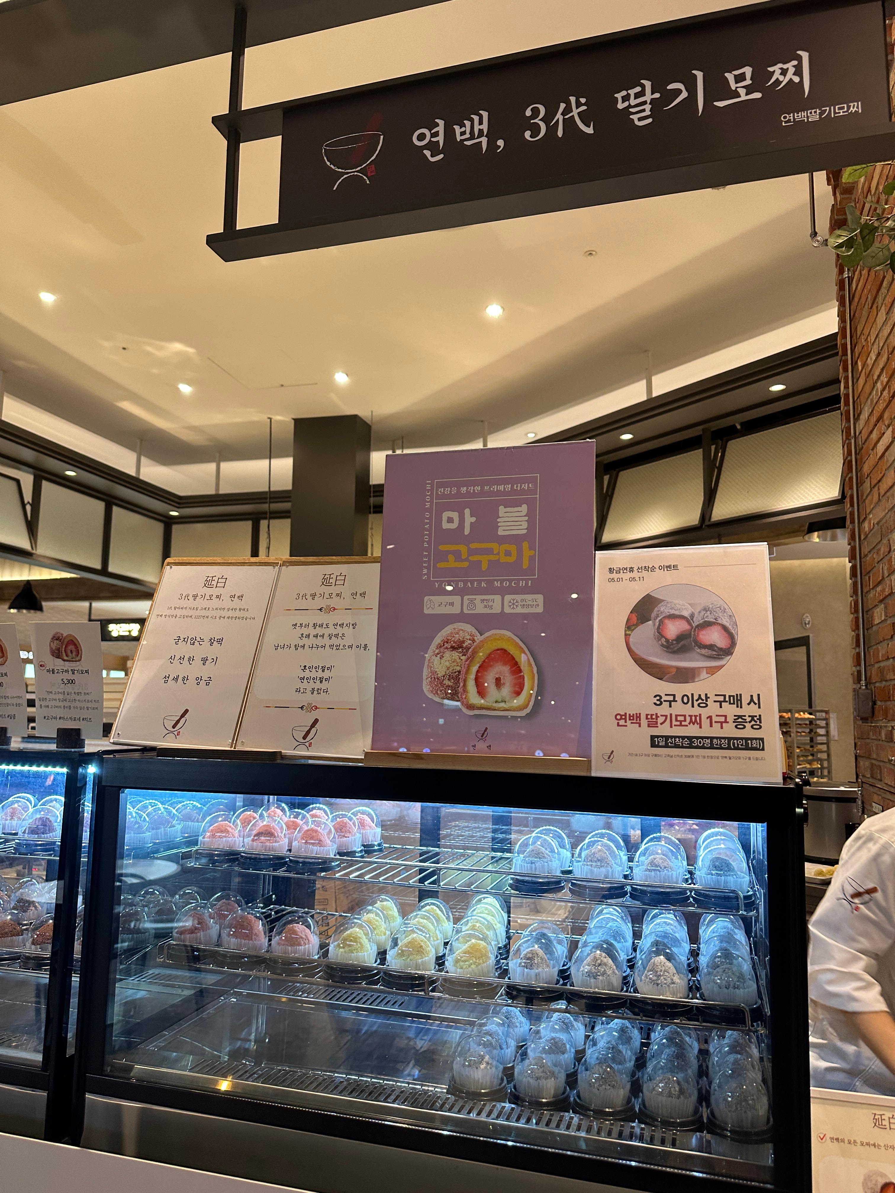 연백 3대 모찌, 특히 연백 딸기모찌는 최근 현대백화점 식품관에서 자주 보이는 인기 수제 디저트 브랜드예요. 다음과 같이 정리해드릴게요.