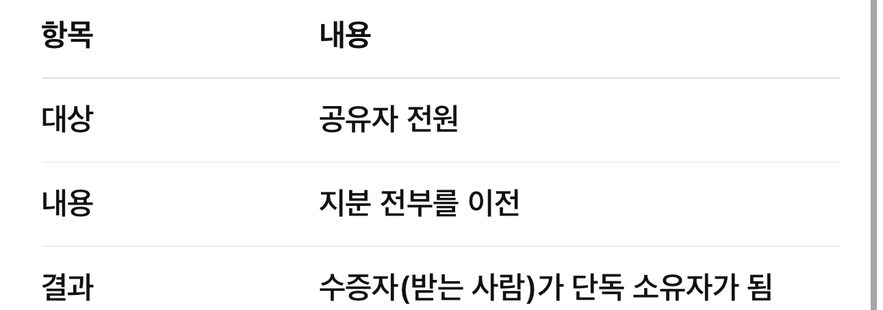 • 지분 전부: 각 공유자가 가진 소유 지분의 전부.