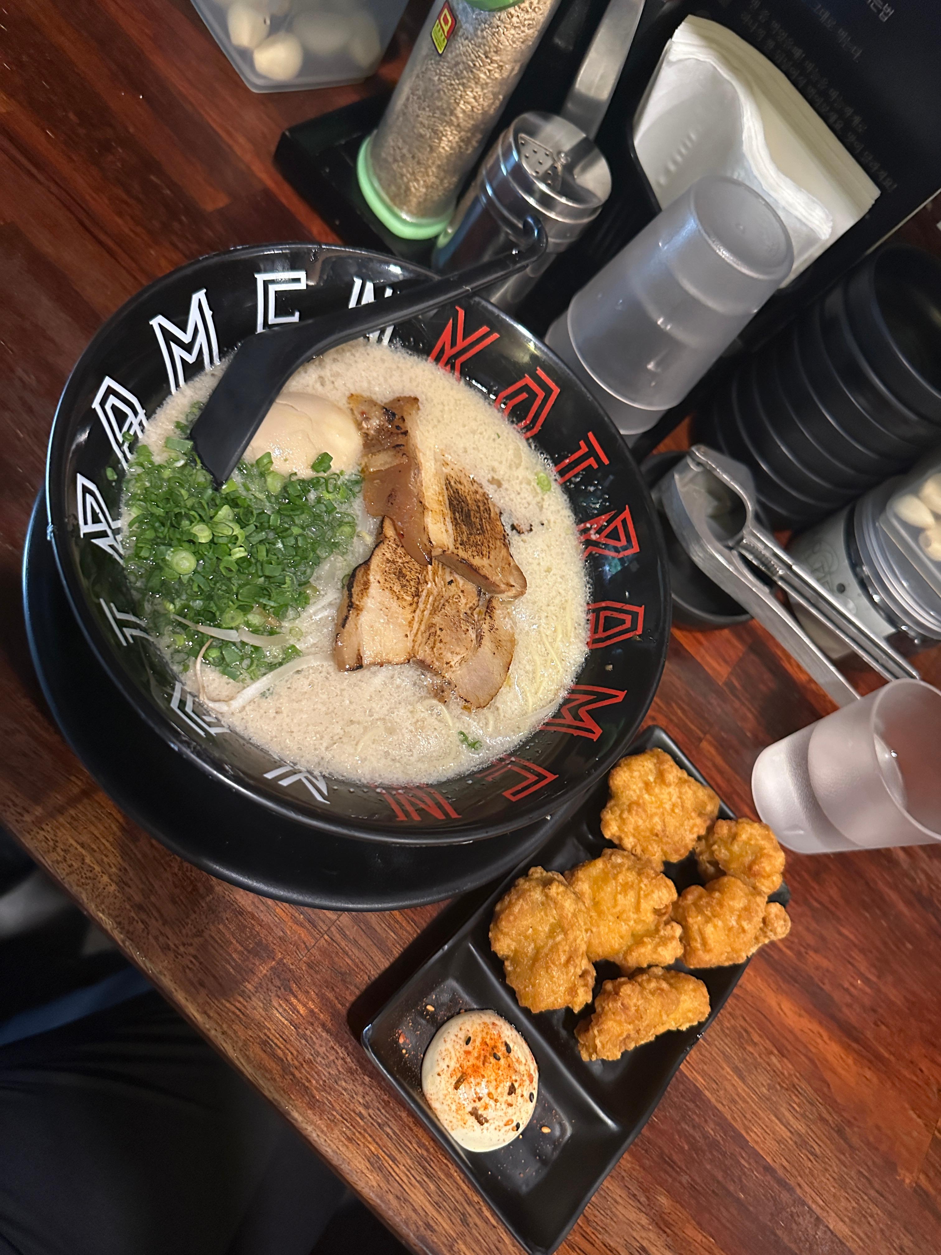 • 진하고 묵직한 돈코츠 육수, 오리지널/매운 라멘/마제소바/차슈덮밥이 대표 메뉴이며, 무인 키오스크, 무료 공기밥, 셀프 토핑 등 혼밥 환경 최적화된 구조도 매력적입니다.